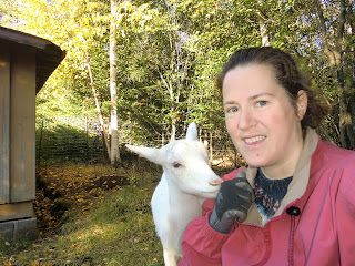 | Our awesome new goat go to gal, Alisa, with one of the triplets. |